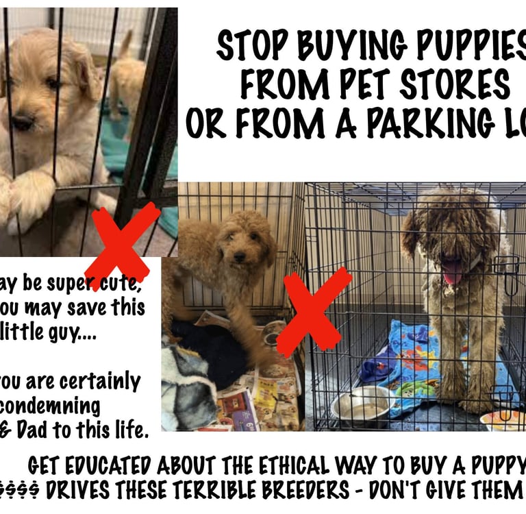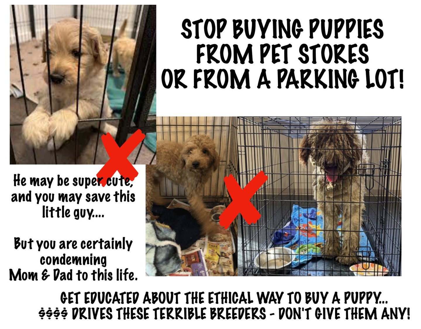This little Doodle puppy may be cute and cheap....but STOP BUYING PUPPIES FROM PET STORES, OR MEETING PEOPLE IN PARKING LOTS TO PICK UP A PUPPY, OR IGNORING WHERE THAT PUPPY MAY HAVE BEEN BORN OR WHY.